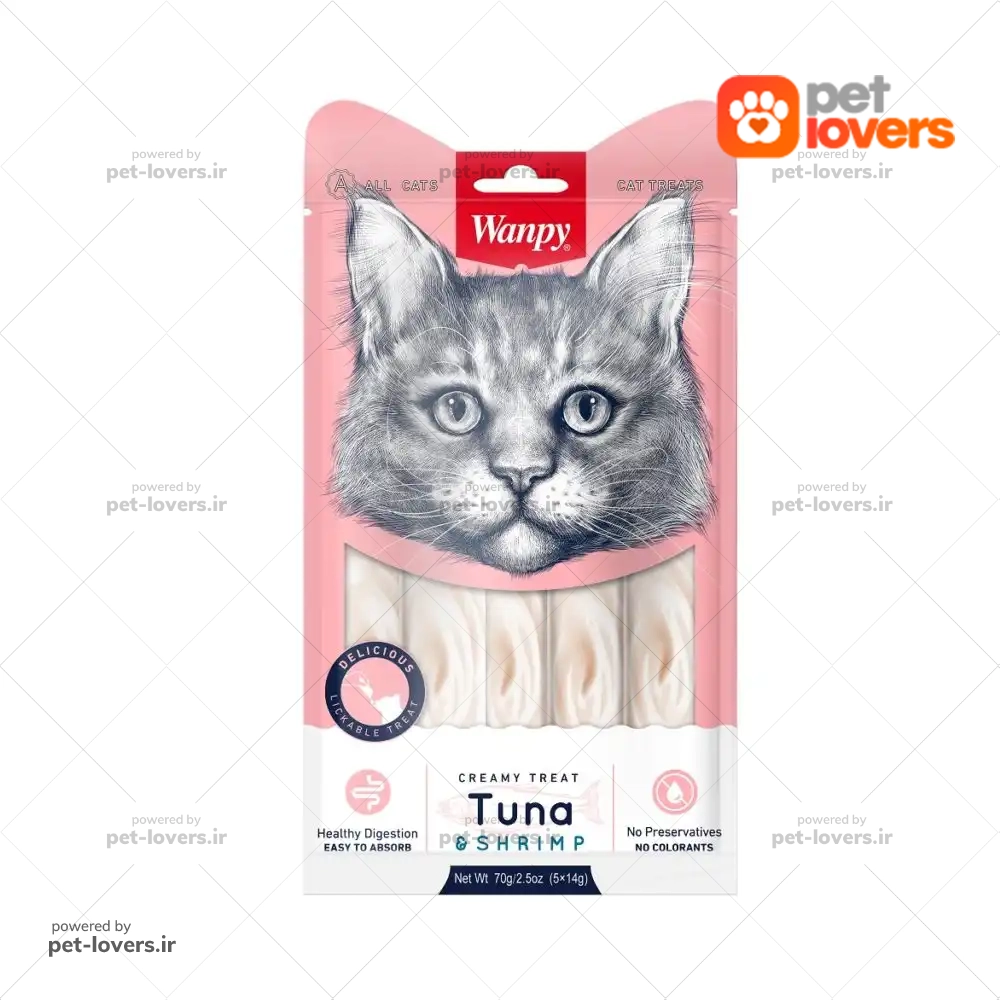 بستنی گربه ونپی با طعم ماهی تن و شاه میگو مدل Wanpy Tuna & Shrimps بسته 5 عددی