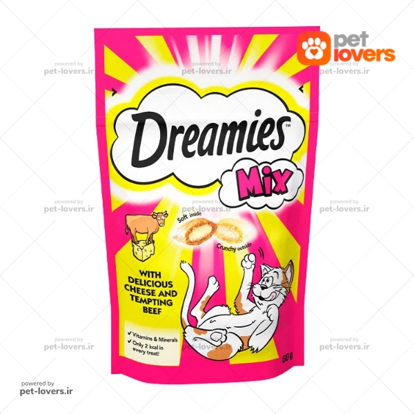 غذای تشویقی گربه دریمیز مدل گوشت گاو و پنیر وزن 60 گرم