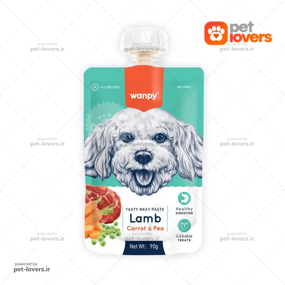 پودینگ سگ ونپی با طعم گوشت بره و هویج و نخود فرنگی مدل Wanpy Lamb with Carrot & Pea وزن 90 گرم