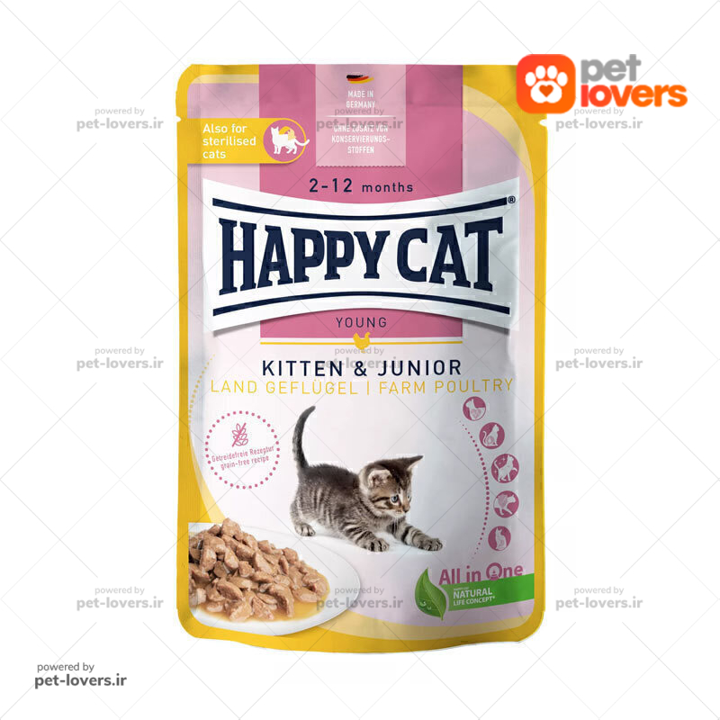 پوچ بچه گربه هپی کت با طعم مرغ Happy Cat Kitten Farm Poultry وزن 85 گرم