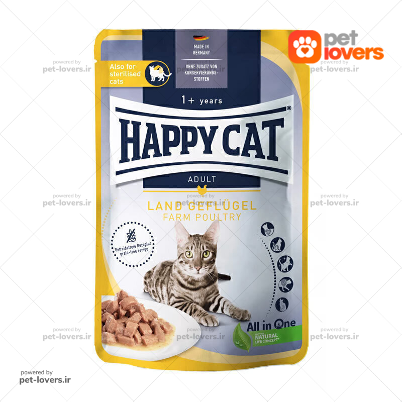 پوچ گربه با طعم مرغ هپی کت Happy Cat Culinary Farm Poultry وزن 85 گرم